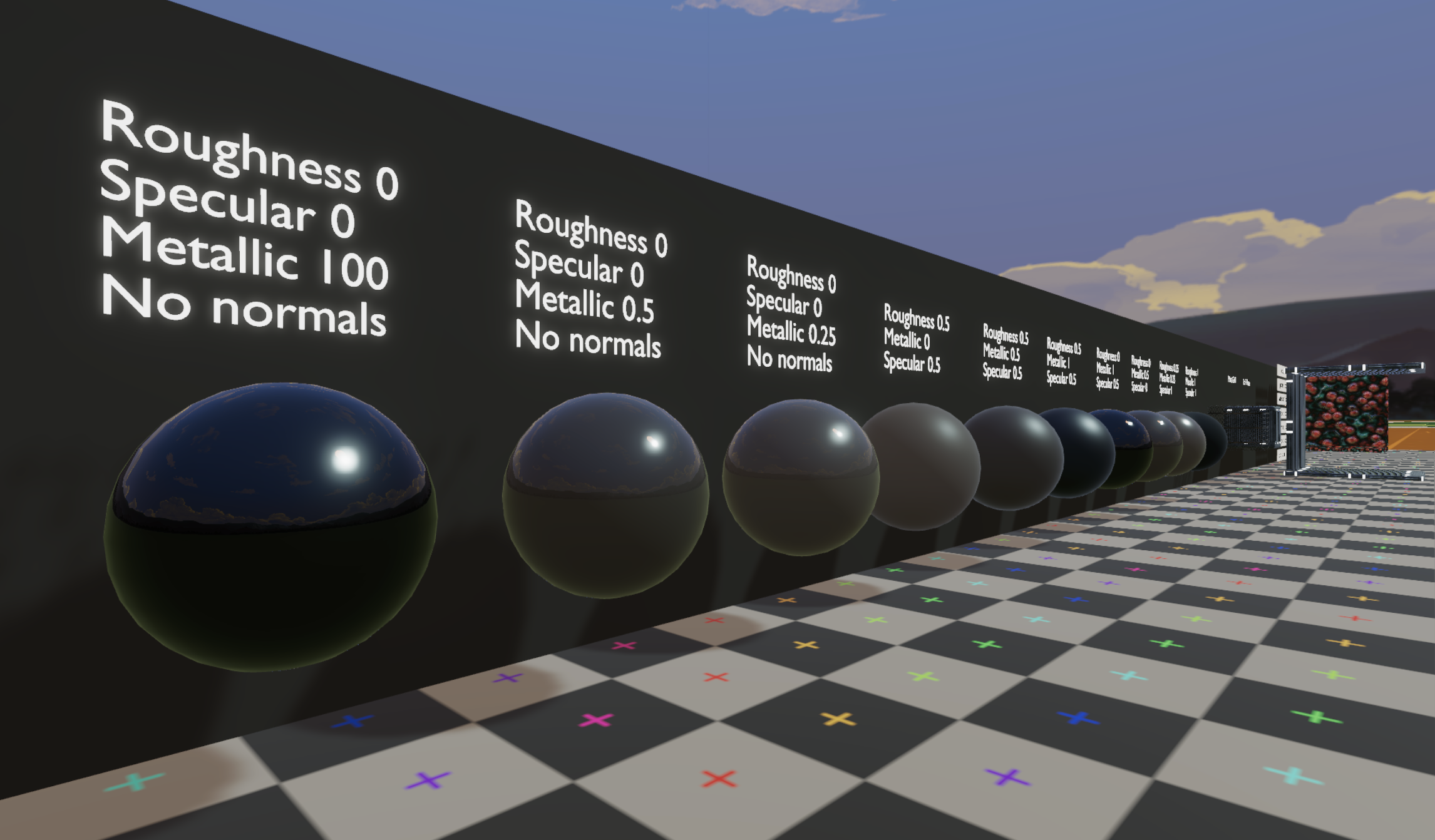 In order to visualize how these properties behavies in world you can go to this testing world to find different objects and materials and how they interact with lights and world environment.