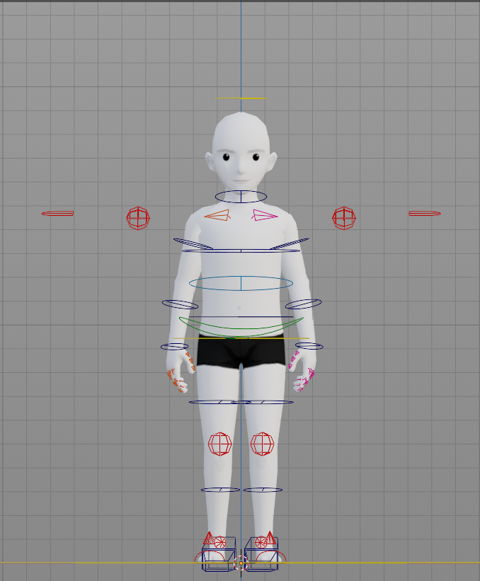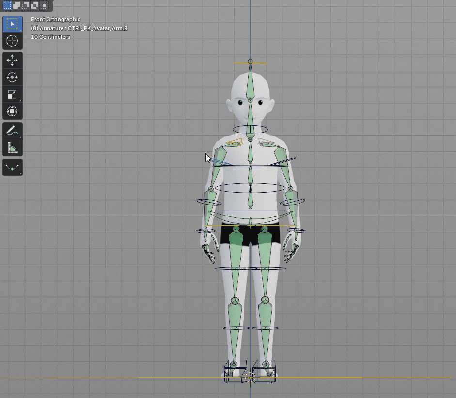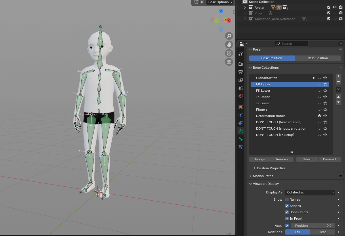 Deforming bones are the ones that will deform the mesh, they are responsible for the way the model moves. That’s the base skeleton and it should not be edited at all. Changing it in any way can break the rig and the animation won’t work when exported. For this reason, this base rig was moved to its own layer (the last one at the bottom). These bones are the armature that’s exported with the mesh.