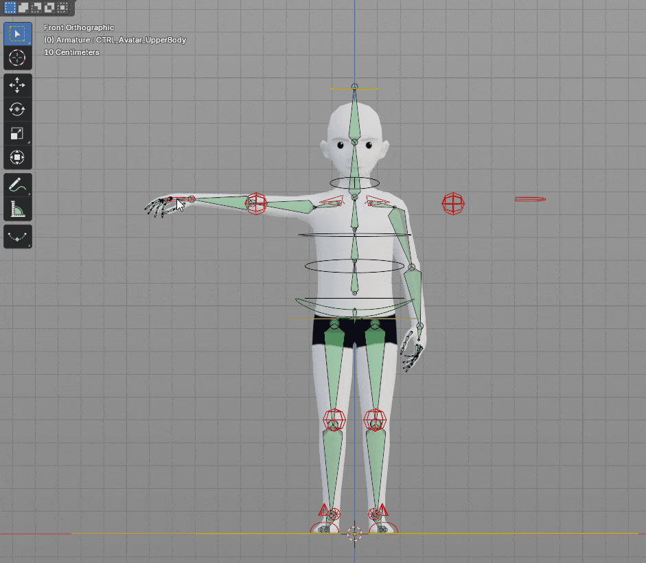 Controls are basically non-deforming bones, which means they will not affect the mesh, making them completely safe to be manipulated and animated. Their function is to control the base skeleton through constraints and drivers, without directly touching it. They usually have different shapes and colors as a visual cue for their functions and purposes, making it easier for the animator to tell bones apart. Some of them will also have more than just location, rotation, and scale transforms because it’s possible to add custom properties to them, such as an IK/FK switch.