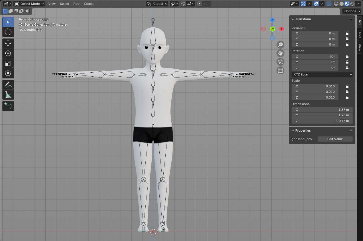 These are the armature’s transforms in Object Mode with the controls’ setup. Do not edit this in any way. The rig should only be manipulated in Pose Mode. To avoid unwanted editing, the transforms have been locked in Object Mode.