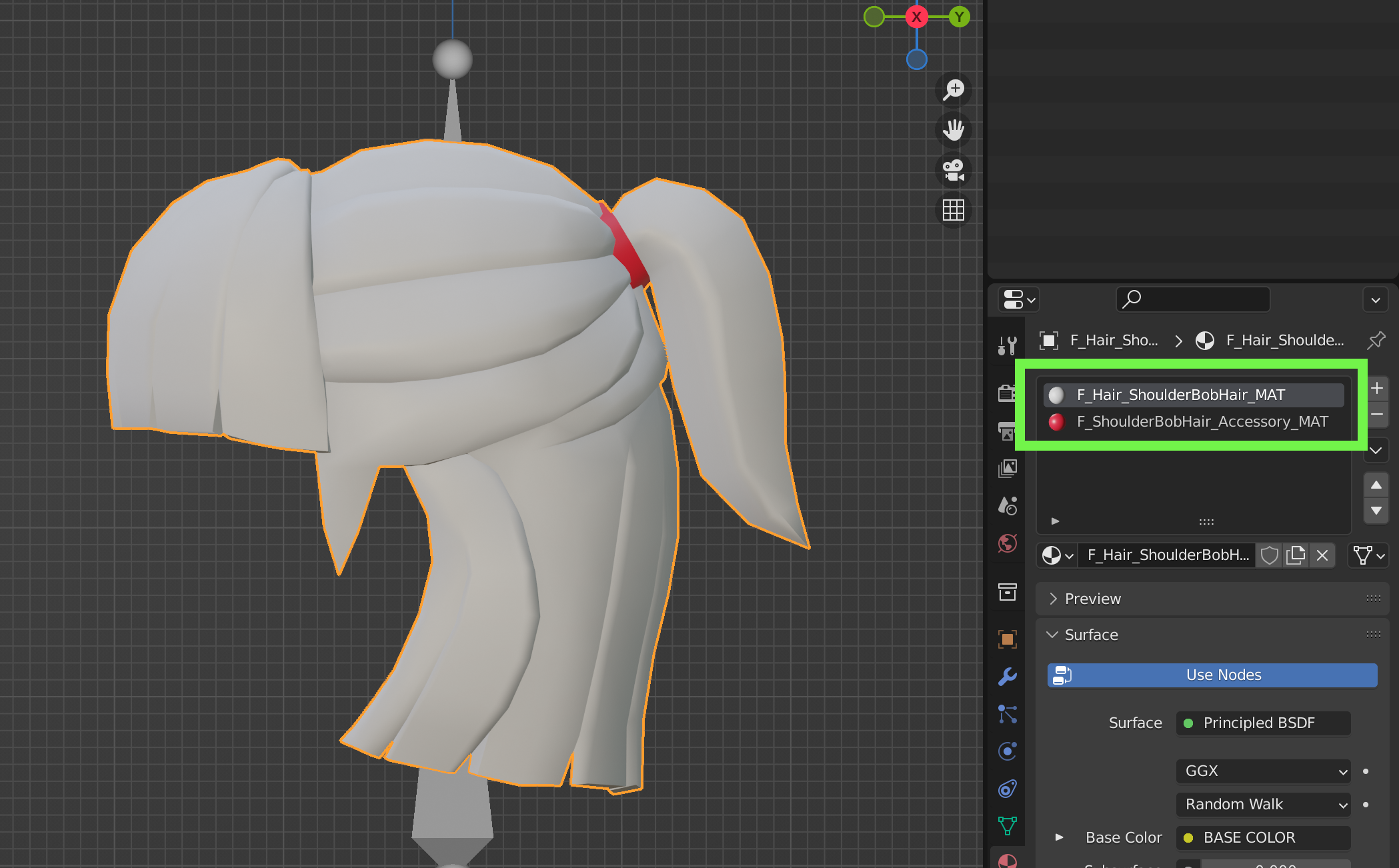 Second, if you want users to be able to change the color of the hair or facial hair using the avatar editor, then you need to paint the hair in grayscale and use “Hair” in the naming of the material (example “M_Hair_Short”). If you want to include other object which doesn’t is influenced by tint just don’t add that naming convention.