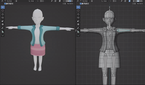 When you’re making wearables, the best way to visualize the final result, and to facilitate how you handle topology and position of the wearable is to work with the model in A-Pose. In order to do that you have to follow this simple steps: