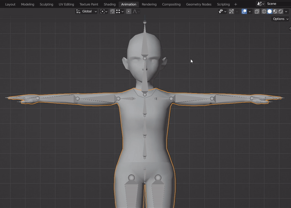 - But it is also good to keep in mind that you can easily alternate from A-Pose to T-Pose just toggling back the “Edit mode” and “On cage” in the armature modifier.